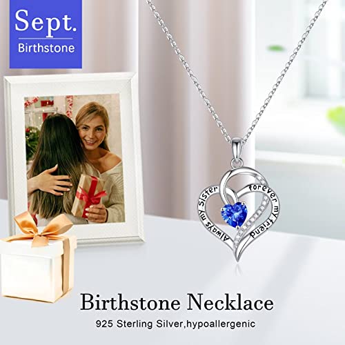 Material: Sterling SilverMetal type: Sterling SilverClasp type: Spring RingChain type: CableGem type: Created SapphireItem type name: Pendant NecklacesMEANING: Celebrate the elegant bond of sisterhood with this chic and elegant necklace. At the center of the pendant is a love heart birthstone and it represents the month of her birth. When she wears this special necklace, she will be the focus in any occasions and genuinely happy for this little surprise. Perfect gifts for your sister on Birthday, Christmas, Valentine's Day, Mother's Day or other special occasions.MATERIALS: The chain and pendant are both made of 925 Sterling Silver. This is a superior stuff that will not turn your skin to green, red or itchy. The chain is strong enough and will not break.SIZE: Chain is 18inches + 2 inches (Adjustable). This length works on practically anyone. The love heart birthstone pendant necklace highlight understated elegance and refined femininity. Itβs a excellent gift choice for your sister daily wearing home or office.GIFTS FOR SISTER: The dainty birthstone necklace comes with a beautiful gift box, a round card and an adorable little Envelope, ready for giving. Perfect gifts for your sister on Birthday, Mother's Day, Christmas, Valentine's Day or other special days.AFTER - SALES SERVICE: If you are interested in or question the birthstone necklace, please contact us in time. We will reply you within 24 hours and give you a satisfactory answer. Perfect for everyday use. High quality materials and excellent craftsmanship ensure long-lasting durability.