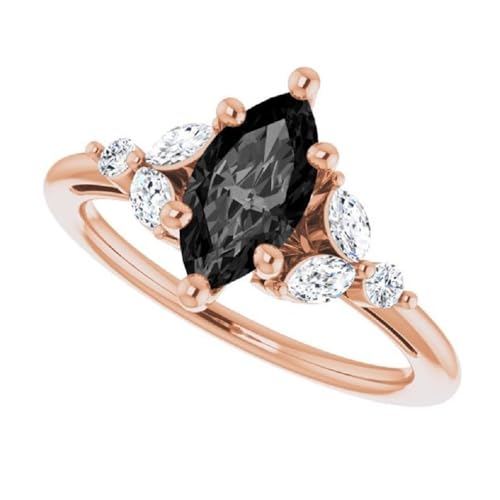 2 CT Marquise Cut Black Onyx Engagement Rings for Women, Trillium Marquise Solitaire Onyx Promise Ring For Her, Black VVS1 Wedding Ring, 925 Silver & 10k 14k 18k Gold top Rings For Gift