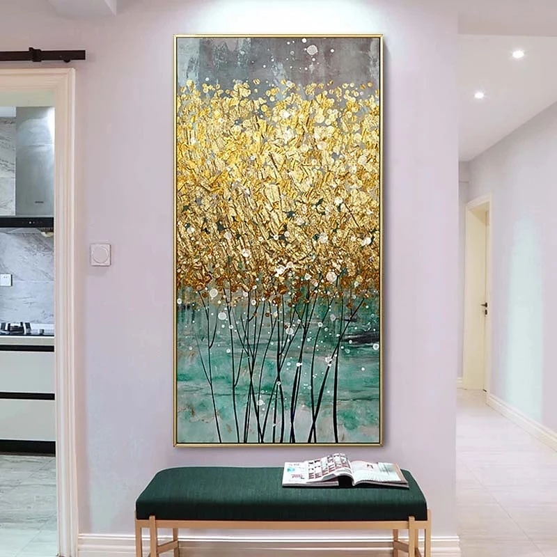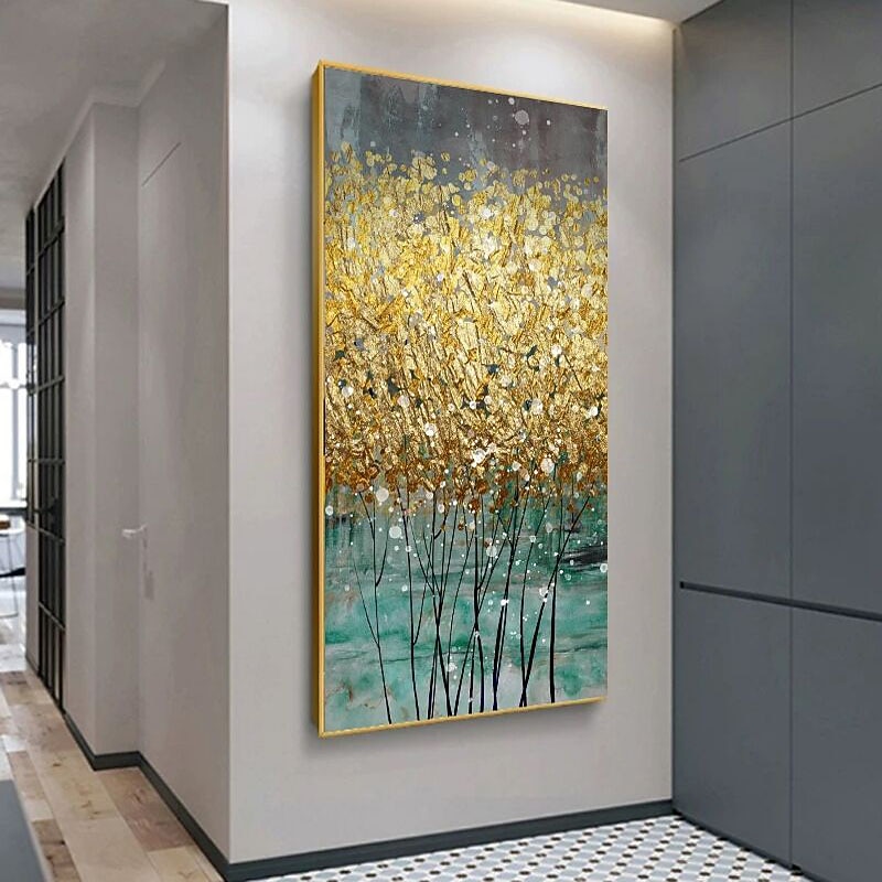 Oil Painting Handmade Hand Painted Wall Art latest Abstract Golden Big Size Green Gold Home Decoration Decor Stretched Frame Ready to Hang