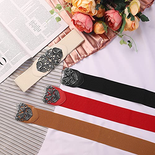 Allegra K Elastic Wide Waist Belts for Women Metal Buckle Stretchy Belts 4