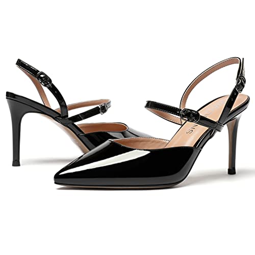 Why Choose WAYDERNS Women's Patent Leather Mary Jane Double Buckle Strap Slingback Solid Pointed Toe Stiletto High Heel Pumps Shoes 3.5 Inch?