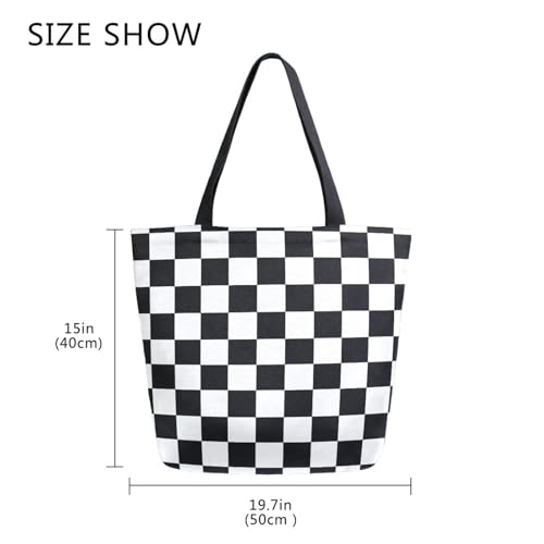 Why Choose Extra Large Shoulder Tote Bag for Beach Travel Weekender Gym Black and White Checkered Reusable Grocery Canvas Shopping Bag?