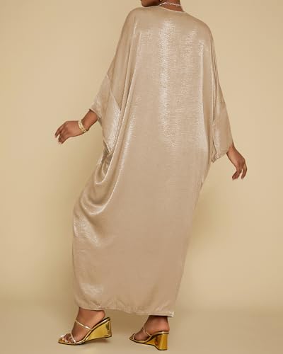 Bsubseach Kaftan Dresses for Women Satin V-Neck Caftans Coverups Long Dress Plus Size Beach Cover Up