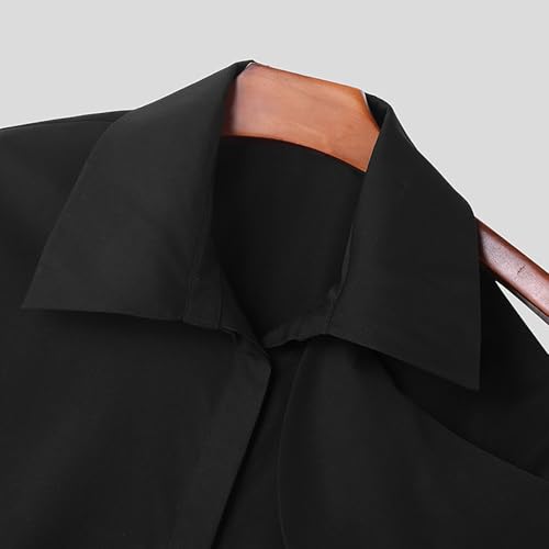 Cambkatl Men's Cold Shoulder Button Down Shirts - Long Sleeve Sexy Personalized Lapel Collar Club Party Shirts