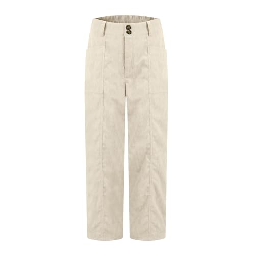 Corduroy Pants Women Straight Leg Elastic Waist Work Pants Casual Loose Ankle Jeans Vintage Teacher Pants with Pockets