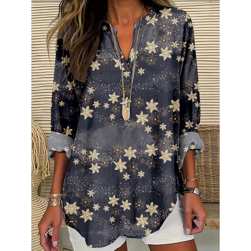 This Women's Blouse Floral fashionable Modern Long Sleeve V Neck Regular Tops Daily Holiday Print Navy Blue Blue Purple Dark Gray Gray Summer combines elegant design with practical functionality. Every detail has been carefully considered to ensure you get the best possible experience. The top-grade construction means this product will serve you well for years to come.