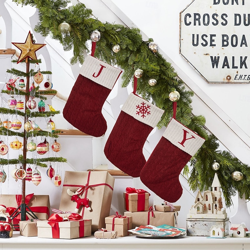 $8.49 - Christmas Stocking Red Knitted Letter Design Medium Size Embroidered Alphabet Holiday Sock DIY Gift Bag for Home Fireplace Festive Christmas Party Decoration Accessory 2025. Shop for cheap Stockings & Holders online? Buy at lightinthebox.com on sale today!