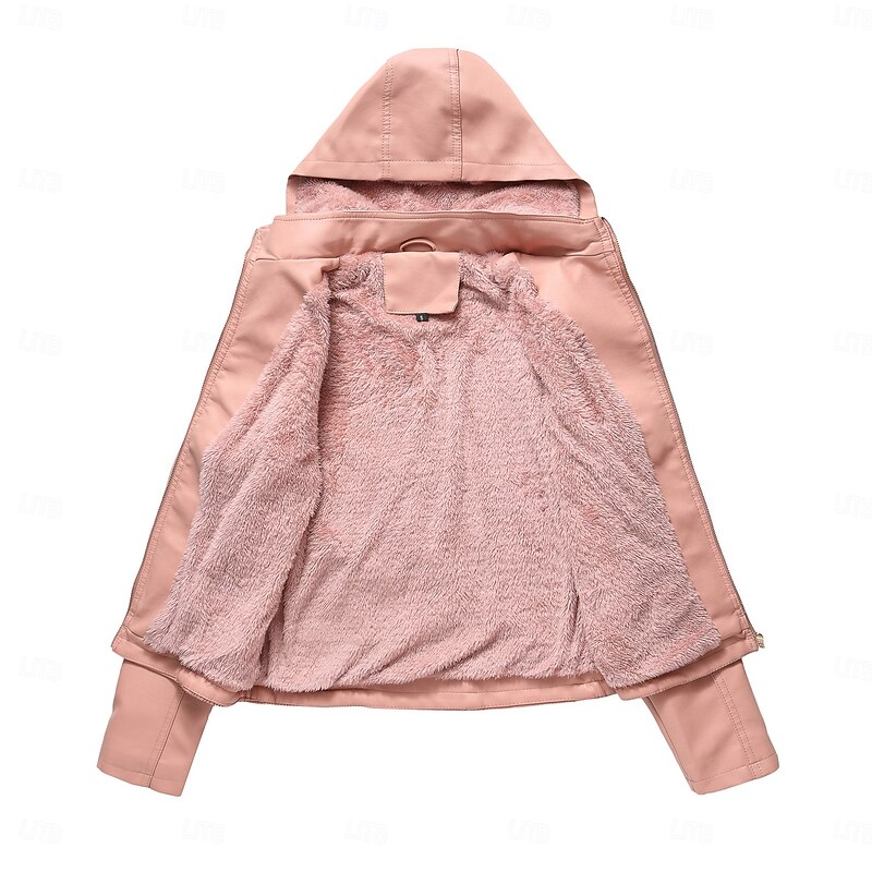 This Women's Faux Leather Jacket Fleece Jacket Waterproof plush Pocket Full Zip Fleece Lined Fashion Street Style Plain Outdoor Casual Daily Regular Hooded Regular Fit Long Sleeve Outerwear Yellow combines elegant design with practical functionality. Every detail has been carefully considered to ensure you get the best possible experience. The superior construction means this product will serve you well for years to come.