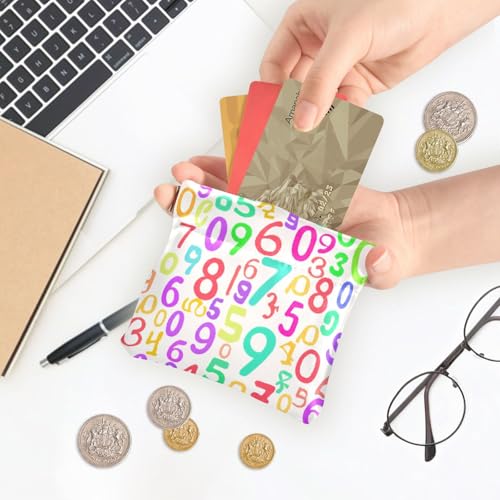 Rainbow Digits Coin Purse Leather Pouch Change Purse, Squeeze Coin Pouch for Cards, Keys & Lipsticks, Unisex