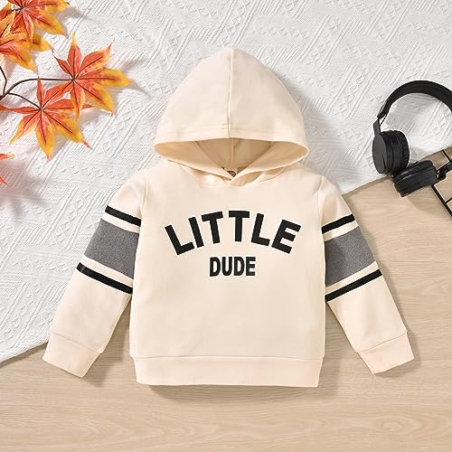 HINTINA Toddler Little Boy Letter Print Hooded Sweatsuit Outfits Long Sleeve Sweatshirt Jogger Fall Winter Clothes Set