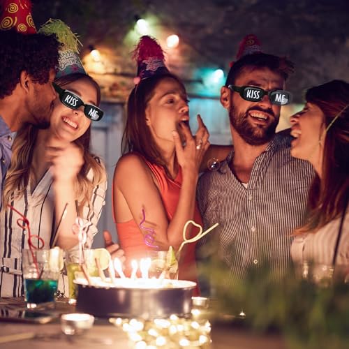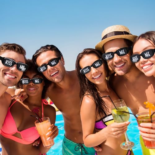 Origin: ImportedSufficient Quantity: each package includes 12 pairs of black sunglasses, which is nice for occasions like group events or parties where you want to create matching, themed looks; With 12 pairs at your disposal, the possibilities are practically infiniteStylish Design: the sunglasses are not your regular spectacles; They feature a playful kiss me print on the lens which sets them apart from regular eyeglasses; This special design not only makes a strong style statement but also adds a dash of fun to any outfit you pair it with; They are the exquisite accessory to grab all the attention at most party or gatheringTrustable Quality: made of PC, the funny sunglasses for women and men are extremely designed to last, suitable for men and women, adults and teenagers; This means that you can enjoy wearing them for longer periods without worrying about breakage; The plastic also ensures the glasses are lightweight and comfortable on your faceWidely Applications: the novelty eyeglasses are suitable for various occasions, such as birthday parties, Valentine's Day, weddings, music festivals, rave parties; You can wear them to a costume party, as a fun accessory for a photoshoot, or as a novelty item at a hen partyGood Gift Idea: with their special design, the eyeglasses make for excellent gifts; Whether you're thinking of a birthday present for your friend or a party favor for your next big bash, these 'kiss me' glasses are a fun gift that's sure to be well-received by everyone Perfect for everyday use. superior materials and excellent craftsmanship ensure long-lasting durability.
